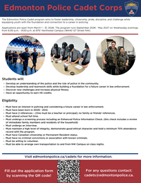 (2024) Cadet program relaunches: The Edmonton Police Service is pleased to announce the return of the Cadet program for the 2024-2025 season.