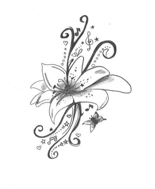 The deceased had a flower tattoo on her right shoulder blade that measured 12.5 cm long and 9.5 cm wide similar to the sketch below.